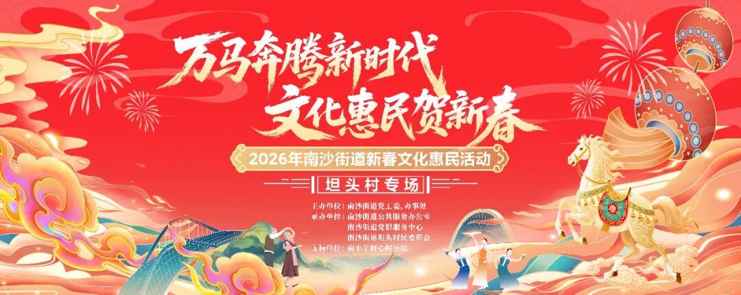 锣鼓喧天辞旧岁,万马奔腾迎新春。近日,2026年南沙街道 “万马奔腾新时代 文化惠民贺新春”文化惠民活动在坦头村圆满落幕。近2小时的演出里,17个精彩节目轮番登场,传统民俗与现代艺术碰撞,本土风情与潮流元素交融,现场掌声、欢呼声此起彼伏,为坦头村民献上了一场热气腾腾的新春视听盛宴。